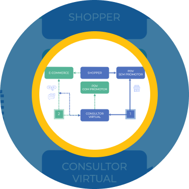 Nos pontos de vendas em que não existe o promotor na loja física, é possível fazer a conexão através de um QR Code colocado nos produtos ou totem.